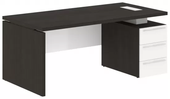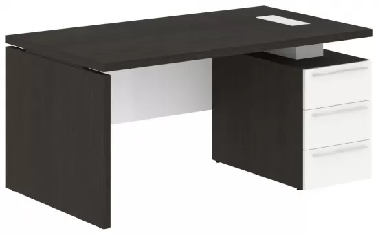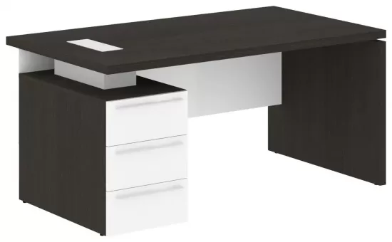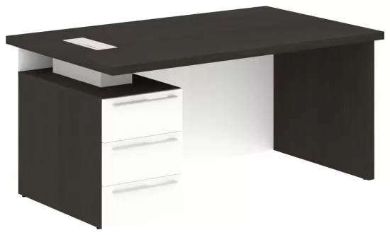Стол руководителя левый- Дуб Мореный/Белый Глянец