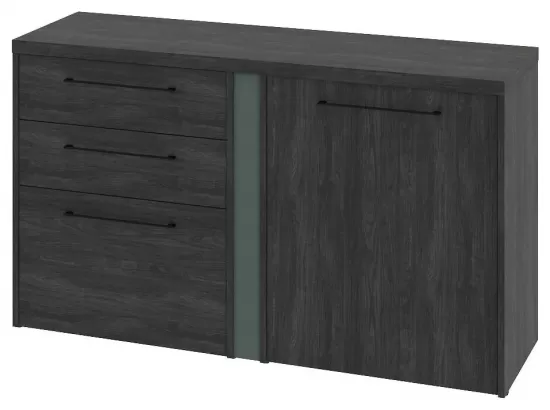 Тумба двухсекционная с дверью ЛДСП левой и 3 ящиками- Дуб Шерман антрацит/Зеленый камень